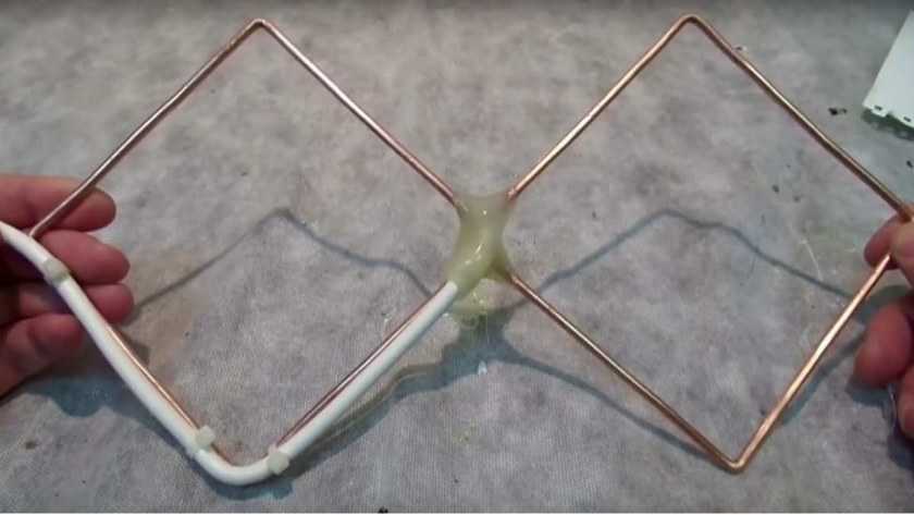 В 60-х годах прошлого столетия, Харченко сконструировал антенну, составляющую двойной квадрат из проволоки. Незамкнутыми углами квадраты соединяются между собой. В этом же месте подключаются к телевизионному кабелю. В свою очередь, на задней части конструкции устанавливается решетка из такого материала, который может провести ток.