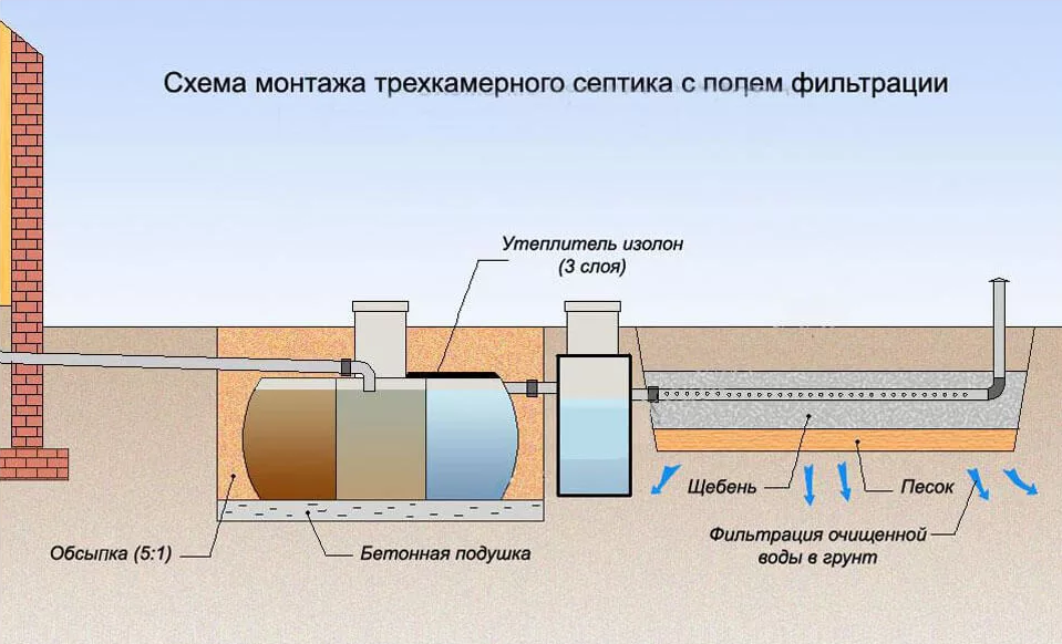 Для частного дома, в котором проживает несколько человек, имеет смысл соорудить трехкамерную конструкцию. Первые две камеры по конструкции будут практически идентичны.