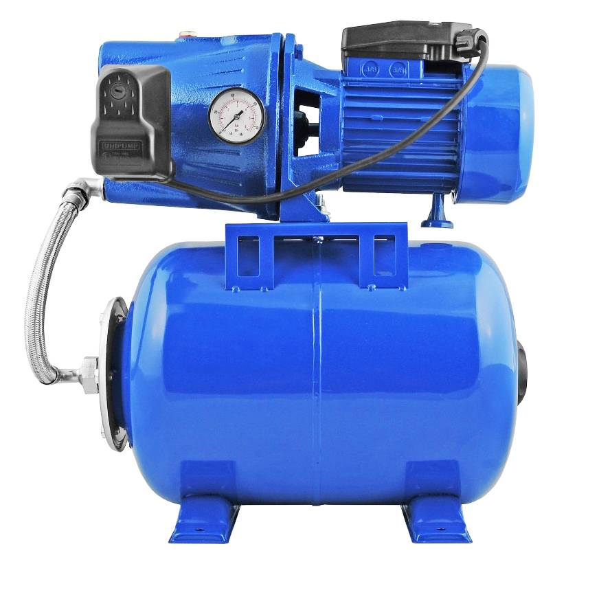 При незначительной глубине зеркала воды в колодце или скважине и при подаче воды из открытого водоема необходима лишь насосная станция. Под этим названием поставляется комплект из поверхностного насоса, реле давления и мембранного бачка на общей станине.