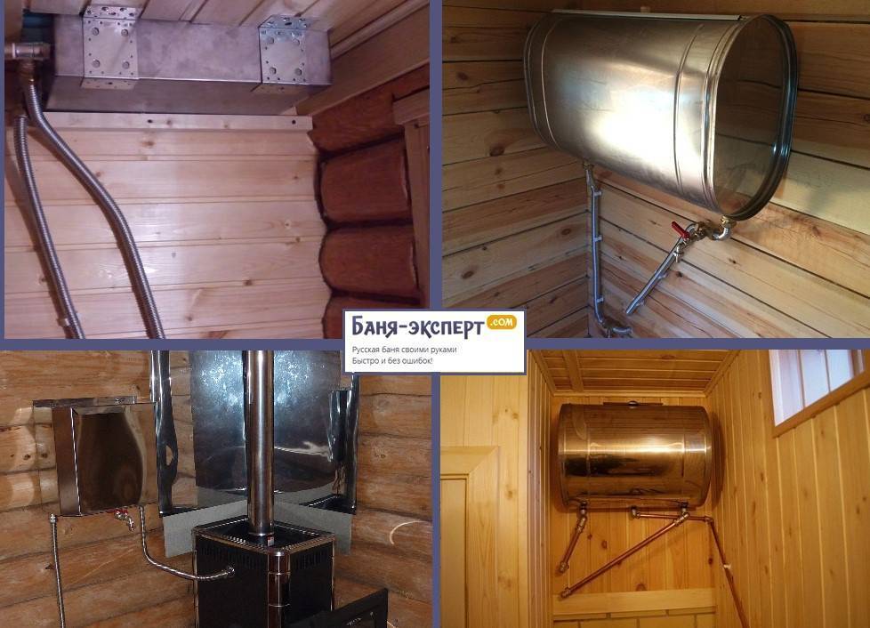 Практика показывает, что конструкция из двух баков оправдывает себя при большом объеме требуемой воды и значительном помещении бани.