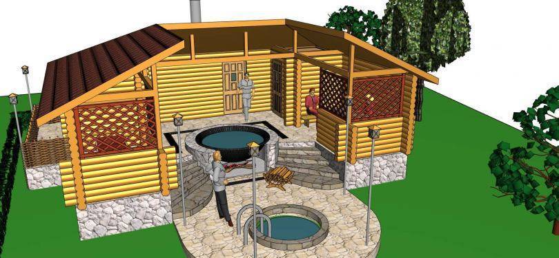 При проектировании важно учесть санитарные нормы (санпин) удаленности бани от других строений, границы двух участков, дома и забора соседа