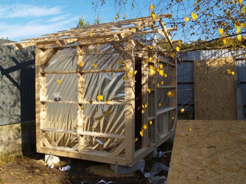 Наиболее быстрое решение проблемы — сооружают каркас из бруса, утепляют минеральной или каменной ватой. Современные технологии предлагают уже готовые модули, после доставки на участок их остается только собрать в готовую конструкцию. Однако технология строительства каркасной бани настолько проста, что это можно сделать самостоятельно, даже не обладая особыми строительными знаниями.