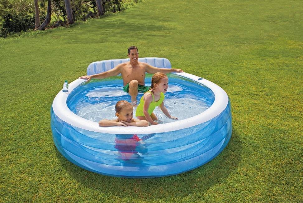 Какой бассейн для дачи лучше? Если вы еще не уверены, нужен вам такой «аттракцион» на участке или нет, покупайте самый дешевый и быстро монтируемый: надувной. Держит воду он за счет надутого кольца. Недостаток такого бассейна — не самая большая глубина: 1,2 метра вместе с бортиками — это его предел.