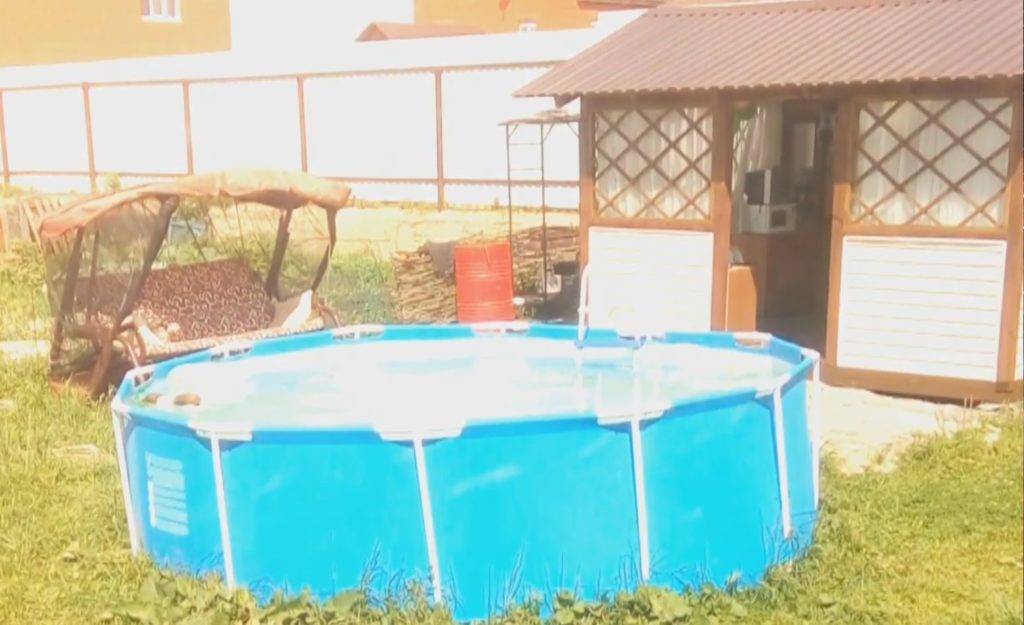 На улице был установлен переносной бассейн.