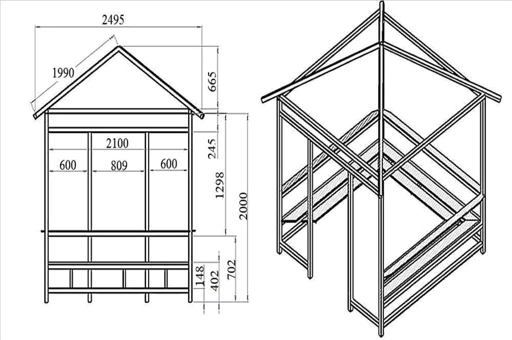 Если за работу берется профессиональный строитель, то можно выбрать любой вид деревянных беседок. Но если вы новичок в этой сфере, то рекомендуем выбрать и построить элементарную конструкцию, которая включает двухскатную кровлю.