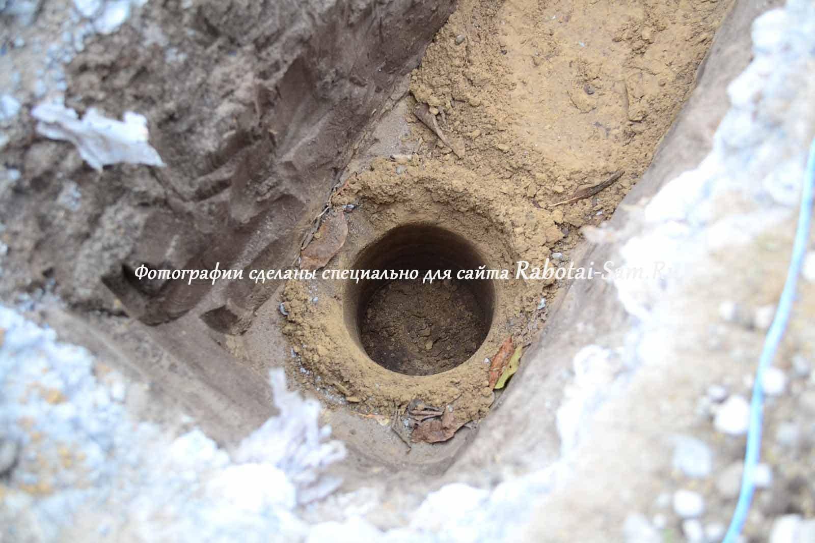 - В яму насыпают 10-сантиметровый слой песка, трамбуют.