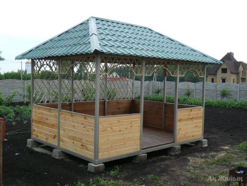 - Труба профилированная. Ее сечение и толщина стенки зависят от размеров беседки.