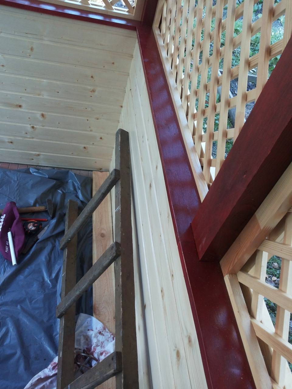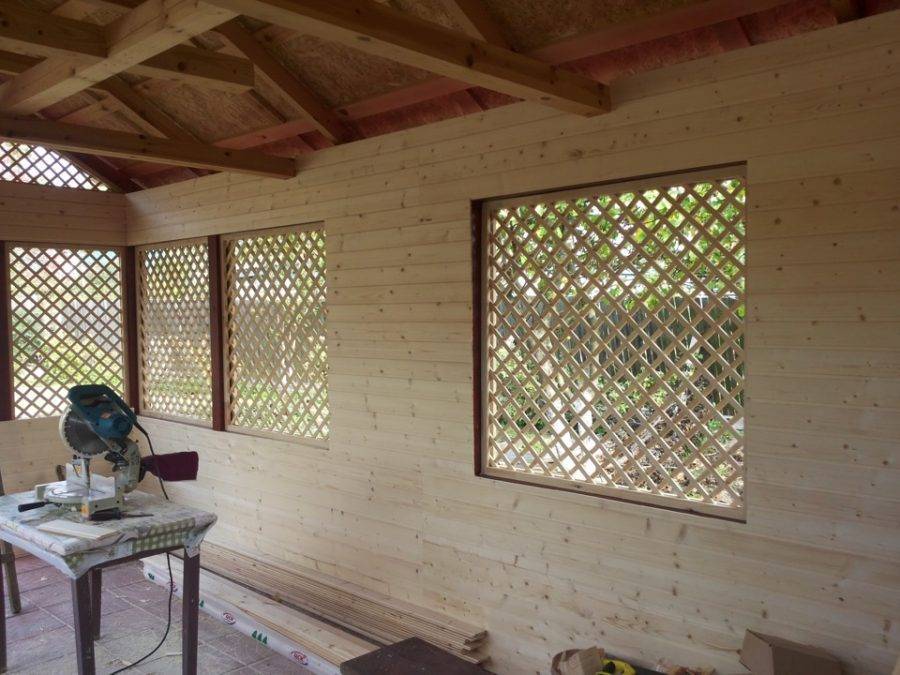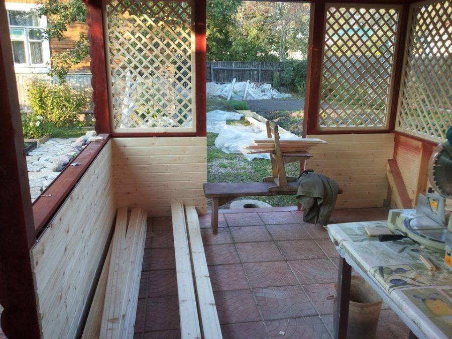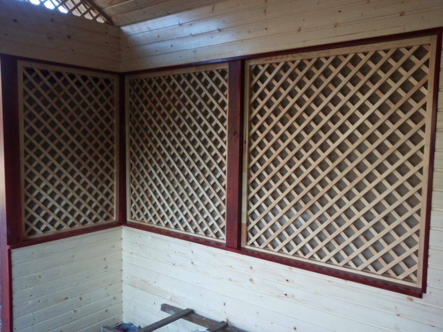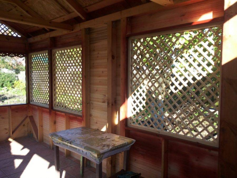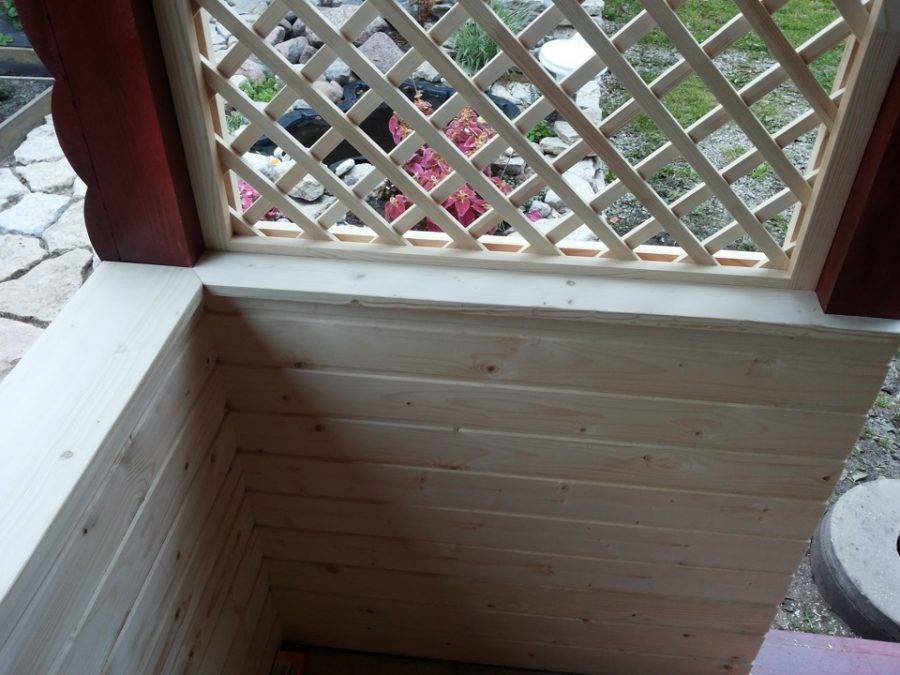 - Поддоны закрывают полностью заднюю стену беседки, и по периметру образуют перила высотой до метра.