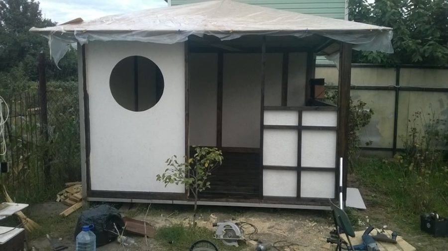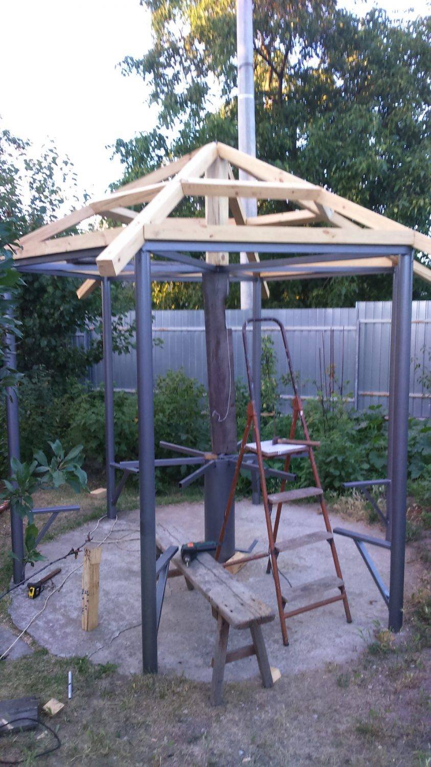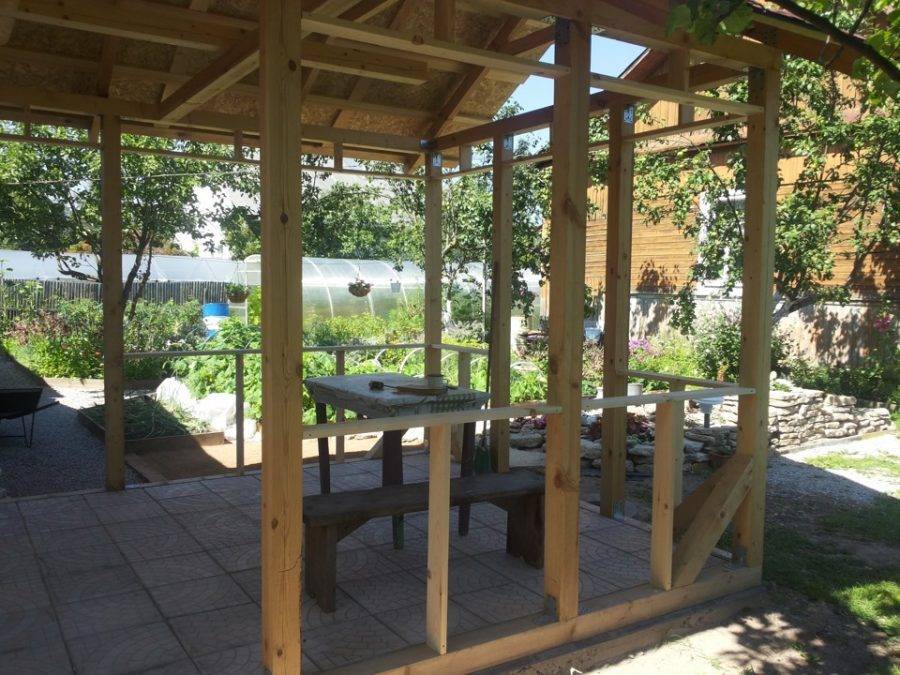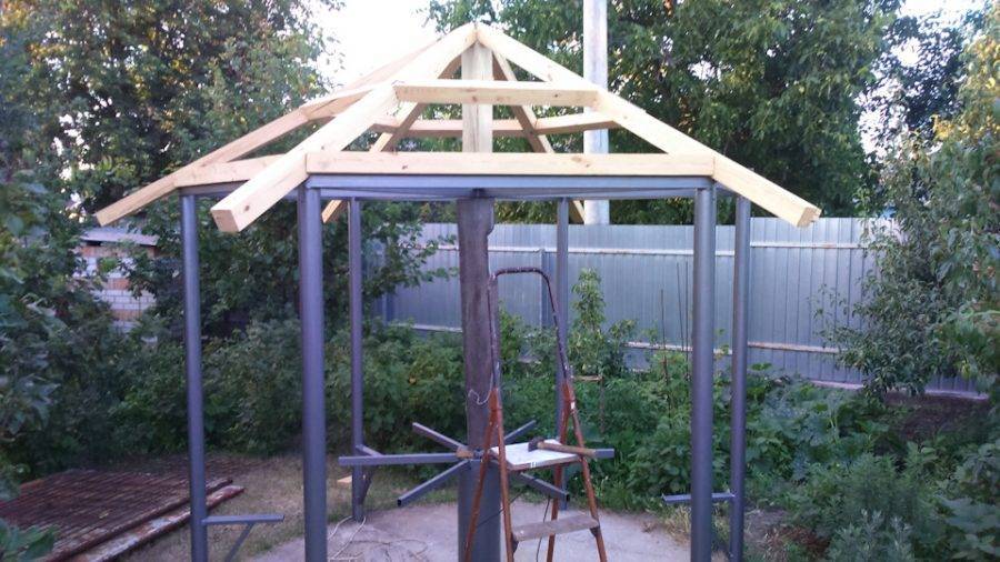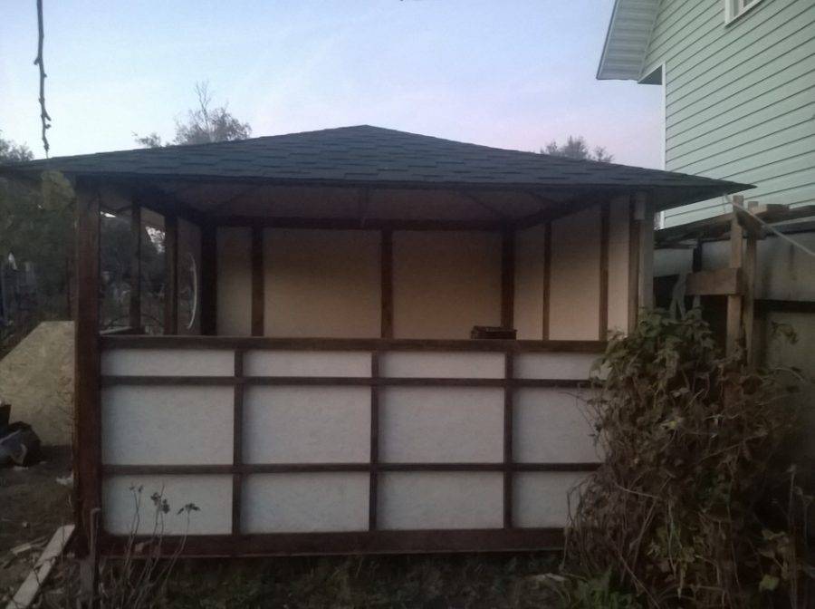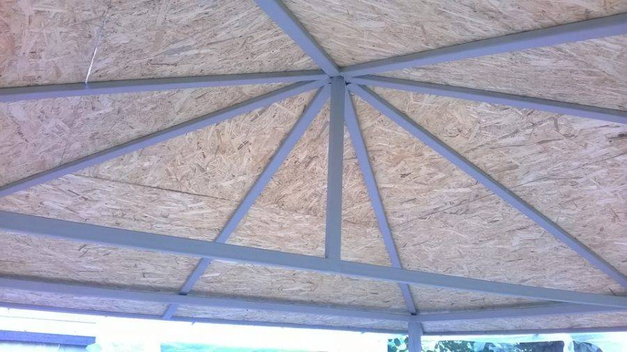В тех случаях, когда беседки рассчитаны лишь на летний сезон, а с наступлением холодов будут демонтироваться, возможна установка только частичной обрешетки. Дополнительную защиту обеспечивает ткань либо другие защитные материалы, которыми укрывают поверхность крыши. Как только наступит осень, крышу легко снять, а оставшуюся конструкцию разобрать.
