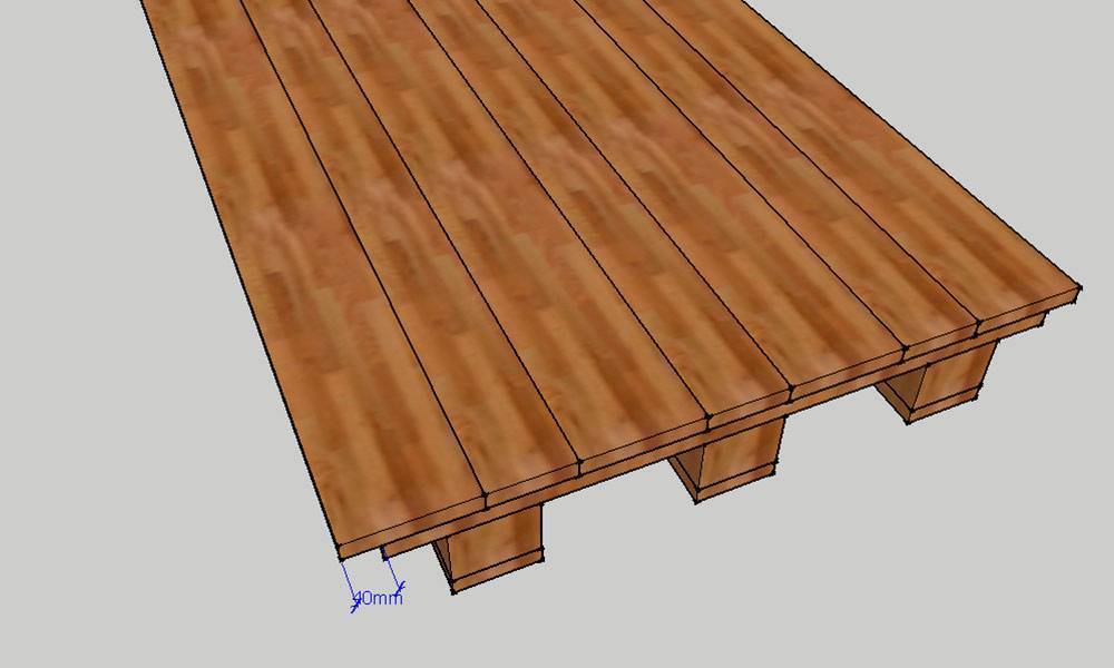 Чтобы изготовить крышку для стола, нужно выбрать еще четыре добротных поддона и перенести их крайние ножки на 63 мм ближе к центру.