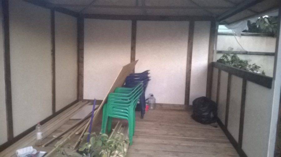 Интерьер можно оставить пустым или обустроить как вторую комнату за счет утепления и облицовки стен изнутри. Гонт (битумная черепица) особенно подходит для крыши легких конструкций. Черепица доступна во многих цветах, это экономное покрытие.