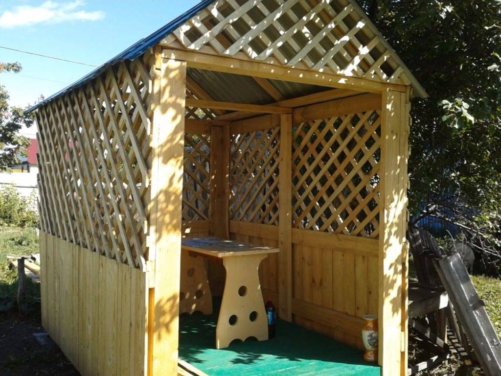 С другой стороны, говорить о прочности таких беседок не приходится: на стены лучше не возлагать серьезных нагрузок. Конструкция не может похвастаться высокой долговечностью, а для того, чтобы выполнить плетение, понадобятся навыки.