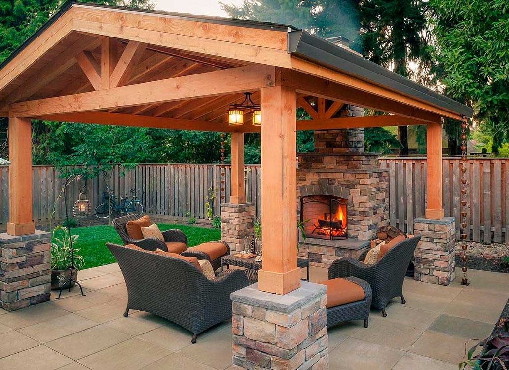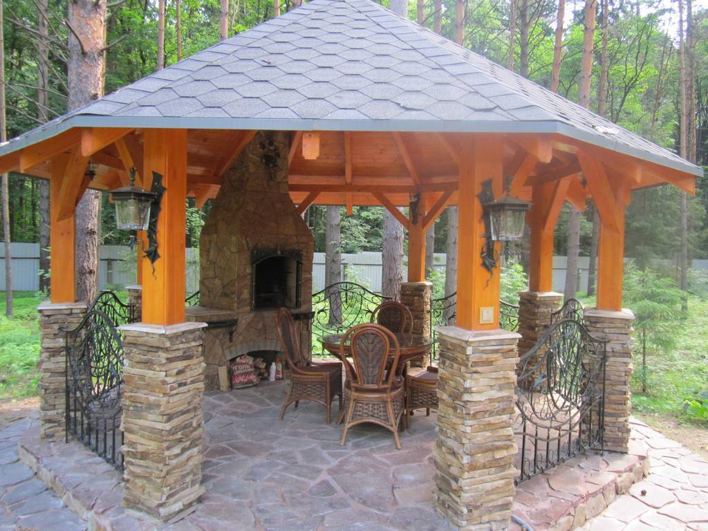 Хоть древесина легко воспламеняется, внутри беседки своими руками выгодно устраивать очаг. Эта выгода объясняется: