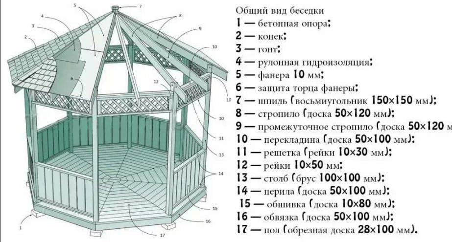 Чтобы своими руками возвести уютную садовую беседку, нужно заготовить такие материалы: