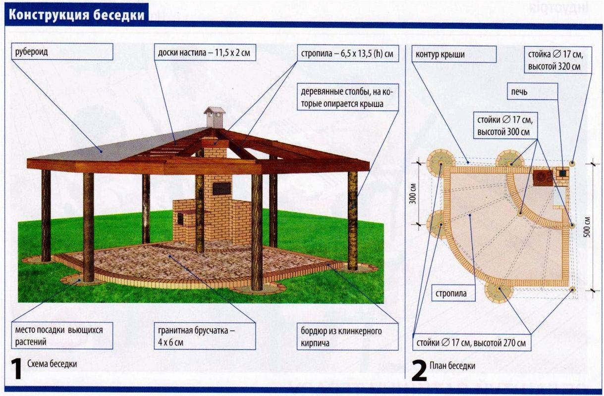 - подробные инструкции по строительству беседки (строительство фундамента, сборка конструкции, способ отделки беседки);