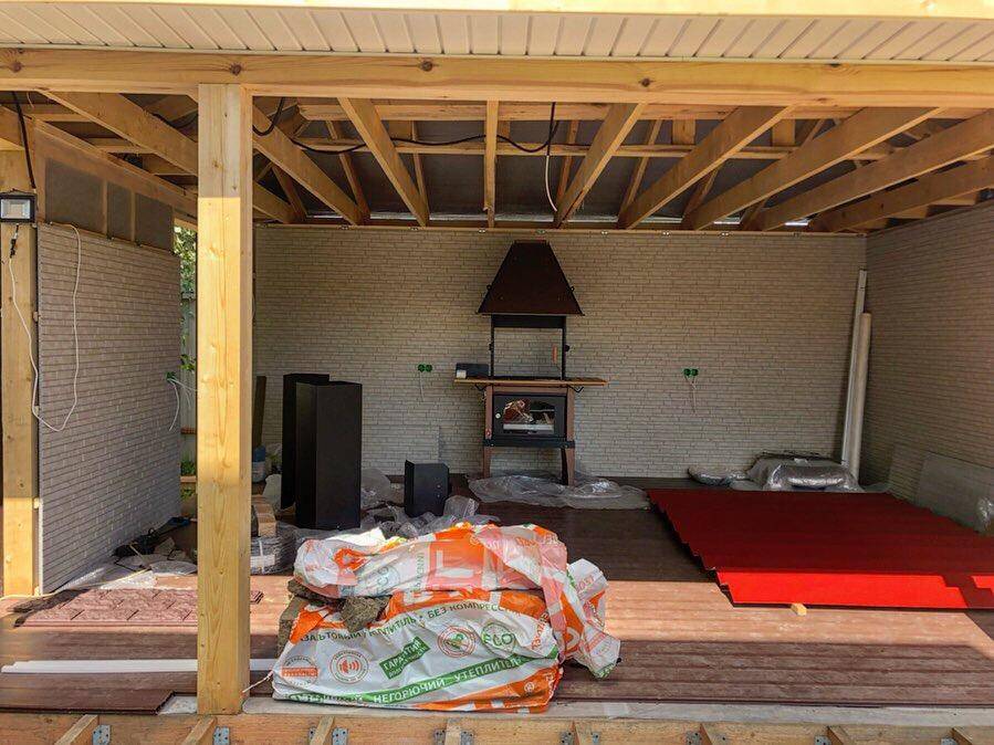 Далее можно обустраивать беседку, для удобства лучше настелить полы, это может быть обычная плитка или декинг.