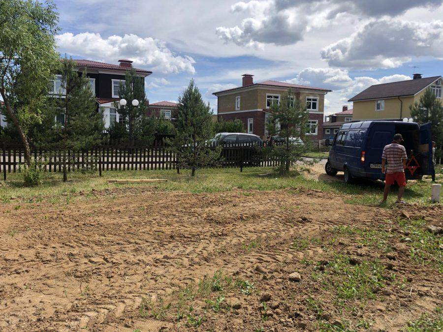 Лопатой выбирают грунт на глубину примерно 25-30 см, выравнивают дно, тщательно его утрамбовывают. Стенки котлована должны быть строго вертикальными. Далее насыпают крупнозернистый песок слоем 10 см, хорошо разравнивают его и обильно увлажняют для уплотнения. По периметру выставляют опалубку из досок высотой до 10 см, укрепляют ее брусом.