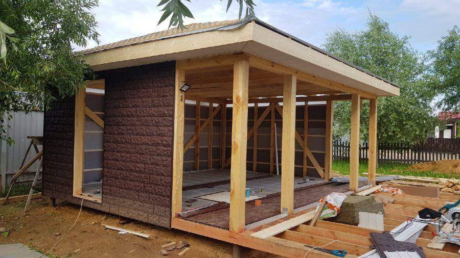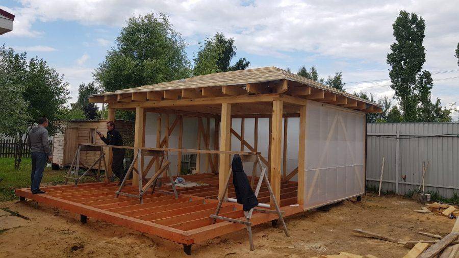 Чтобы избежать серьезных ошибок и минимизировать расходы на строительство, начинать нужно с самого простого. Для примера взята беседка прямоугольной формы с односкатной крышей и на плитном фундаменте.