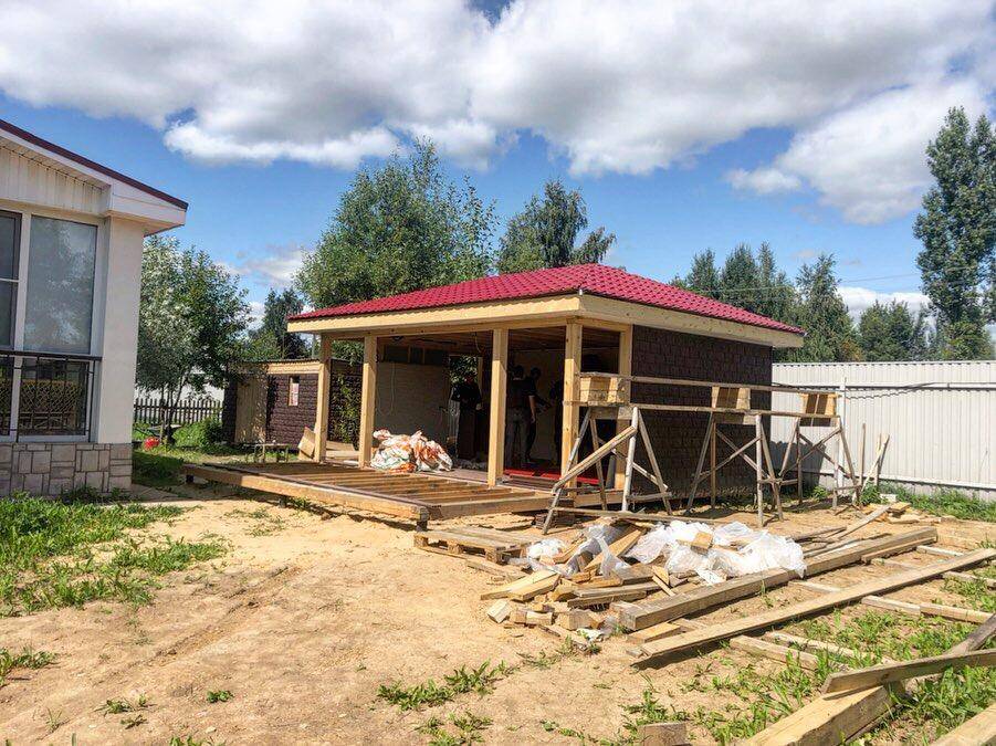 Вместе с декоративной «башенкой» высота беседки составляет 5 м.