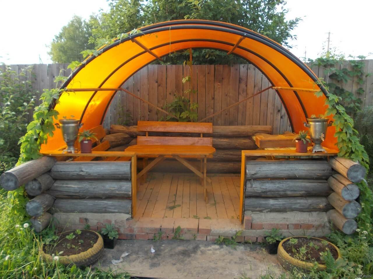 Оснастить изделие можно мангалом, барбекю или оставить в первоначальном виде.