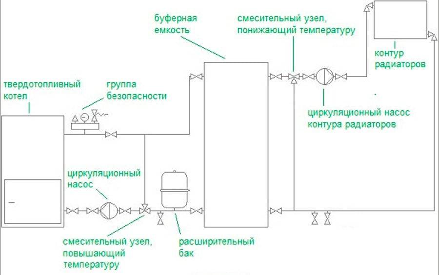 Обвязка твердотопливного котла с теплоаккумулятором
