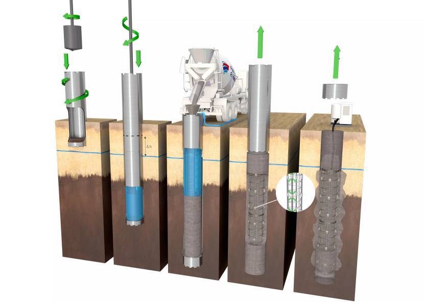 Поэтапная технология устройства буронабивных свай с обсадной трубойИсточник ffgb.be