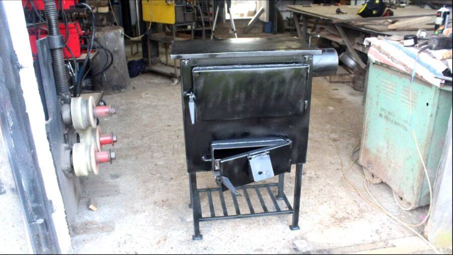 Агрегат, сваренный из листового металла толщиной от 3 до 5 мм. Использование тонкого железа не имеет особого смысла – печка получится слишком тонкой, ее будет гнуть жар, а в конце концов ее добьет коррозия. Поэтому найдите достаточно толстую сталь, чтобы вам не пришлось изготавливать новую печь каждый отопительный сезон.