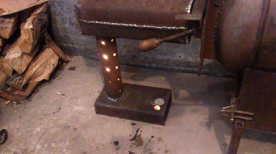 Готовим верхнюю крышку – прорезаем в ней отверстие диаметром 100 мм под дымоход. При необходимости, дополняем буржуйку на дровах варочным отверстием. Привариваем крышку к нашей печке – все готово! Теперь устанавливаем печку на штатное место и приступаем к испытаниям. И да, не забудьте приделать к ней ножки или установить ее на негорючее основание (например, из кирпича).