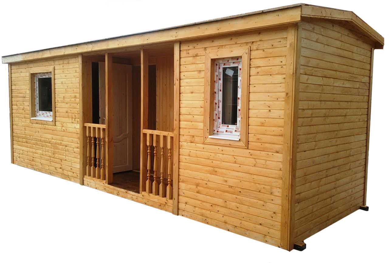 Достоинство деревянных бытовок — их малая масса. Стоят такие сооружения даже на грузовых шинах или сложенных друг на друга строительных блоках. И нормально себя чувствуют. В общем и целом — деревянная дачная бытовка с туалетом и душем — это хороший вариант.