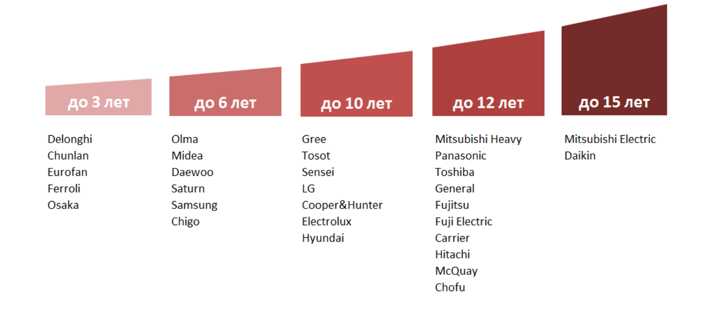 - Самые надежные: к этой категории можно отнести марки Mitsubishi Electric, Daikin, Hitachi.