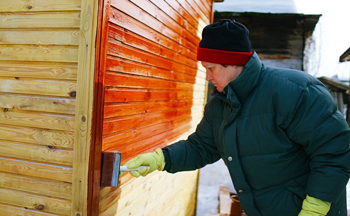 Выполняются работы при температуре +10о – +20оС. Негативные атмосферные влияния (жара и мороз) сказываются на связывании раствора с древесиной. Покрытие трескается и отслаивается.