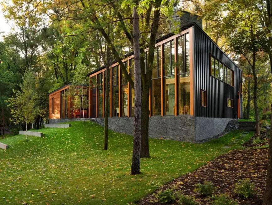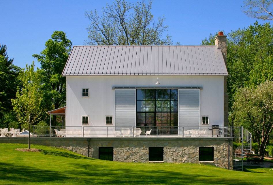 Поверхность материала устойчива к коррозийным процессам. Для крепления профнастила потребуется гидроизоляция, теплоизоляция и крепежи. Конечный результат получается достаточно привлекательным. На фото представлен дом, обшитый профнастилом