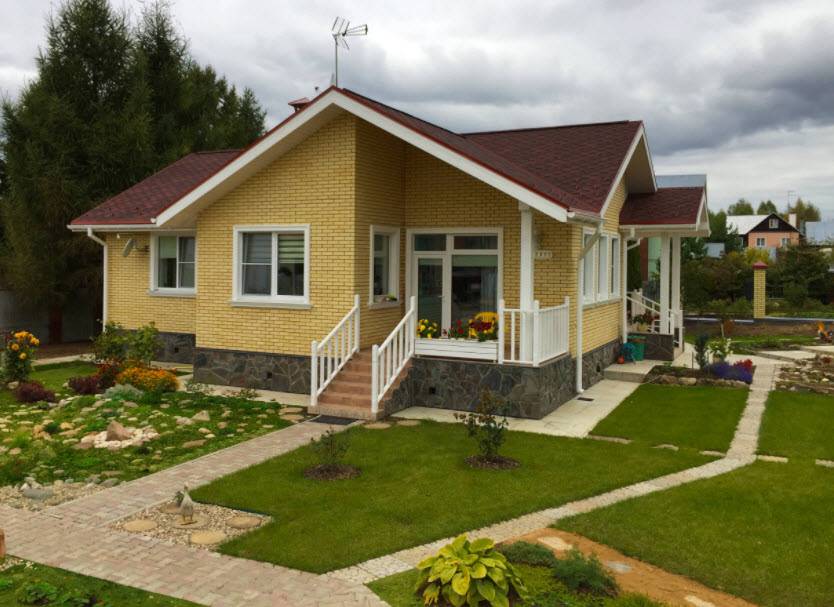 Считается одним из самых дорогих и трудозатратных способов, хотя об эффекте говорить не приходится. Безупречно ровная поверхность цоколя кирпичного дома способна вызвать восхищение.