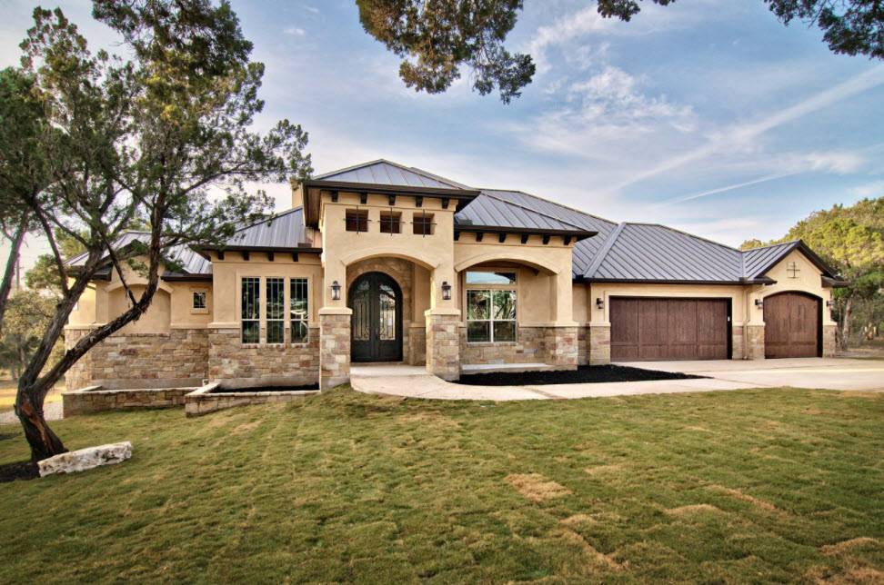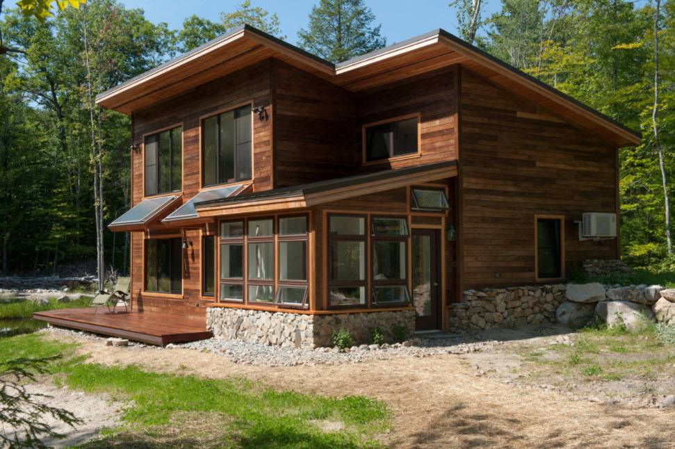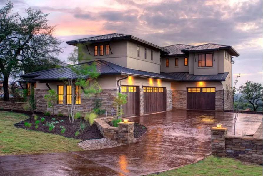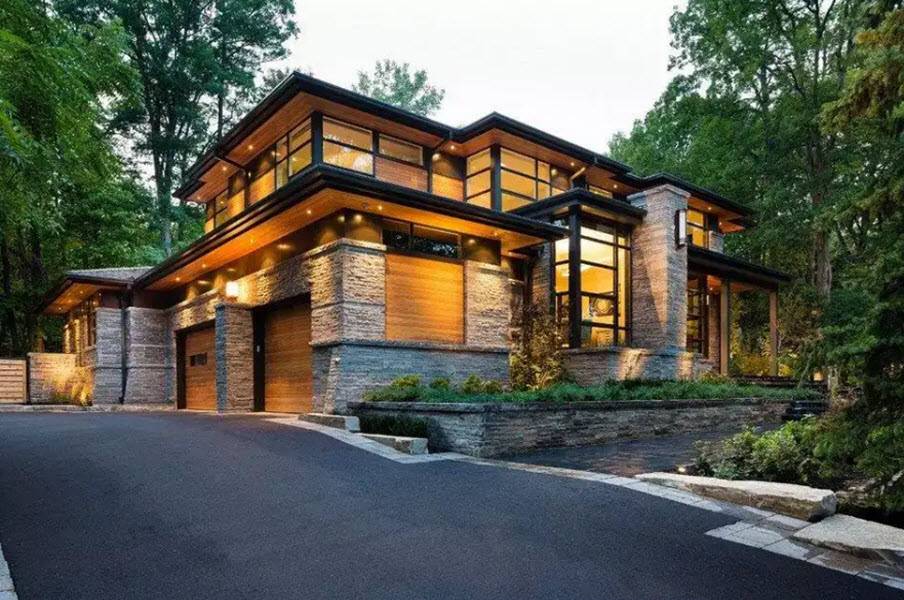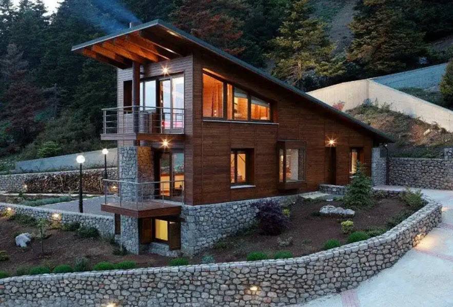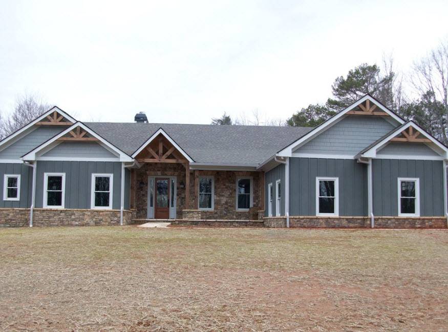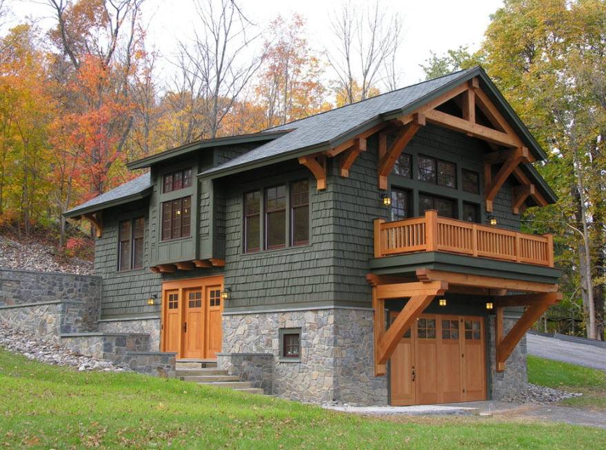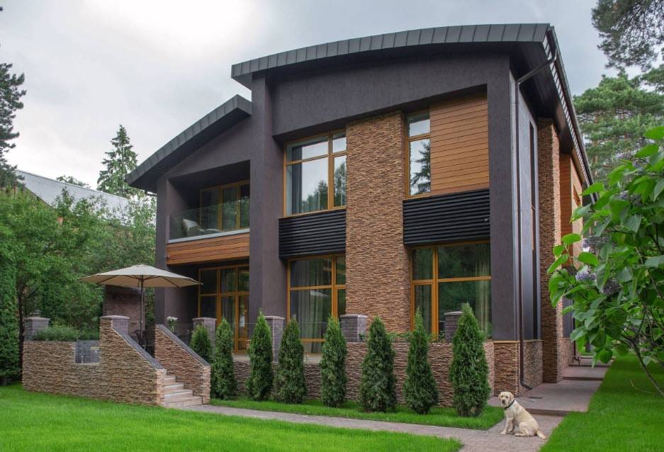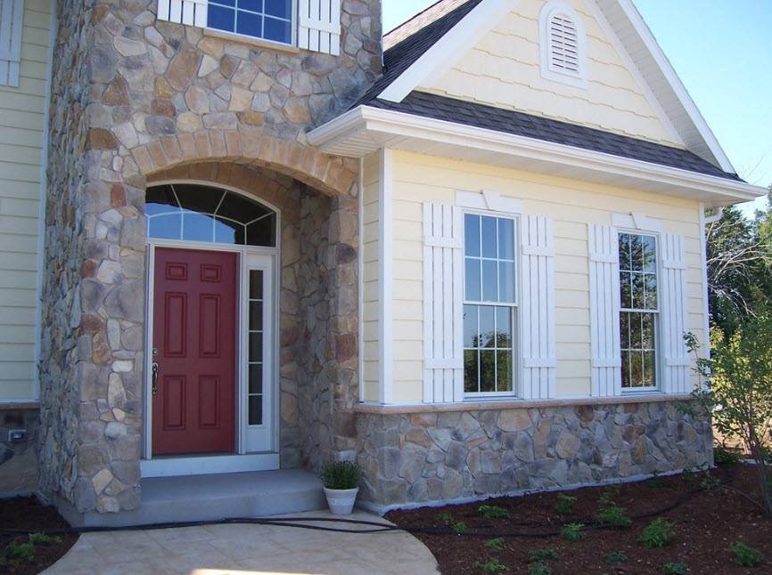 Натуральный камень для облицовки фасадной части увеличит расходы на покупку материалов. Стоит отметить, производители научились выпускать искусственный камень, внешний вид которого, не отличается и полностью напоминает структуру натурального. Фасад с его использованием выглядит природно и естественно. На фото представлен фасад из камня