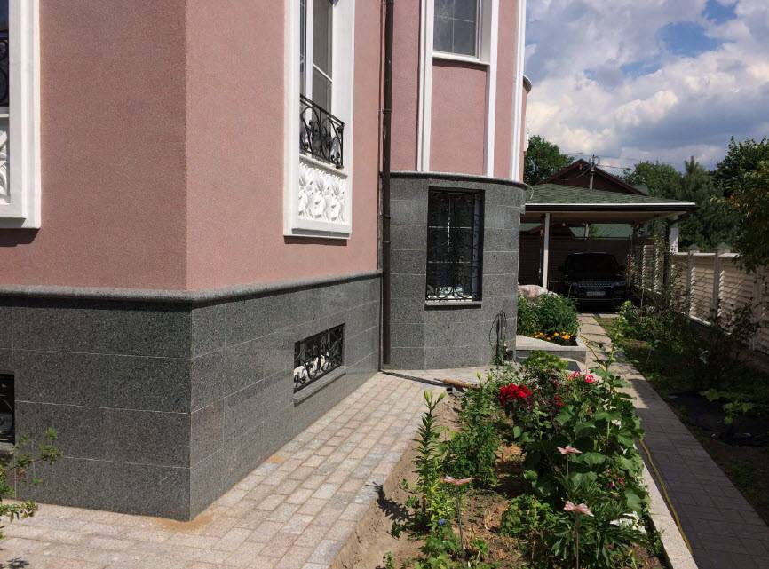 которые обладают необходимыми прочностными характеристиками. Мрамор не применяется из-за своей дороговизны. Недостатки натурального камня – большая масса, что усложняет доставку, монтирование. Необходимо дополнительное армирование цоколя, чтобы он выдержал столь тяжелый материал. К недостаткам относится высокая цена на изделия.