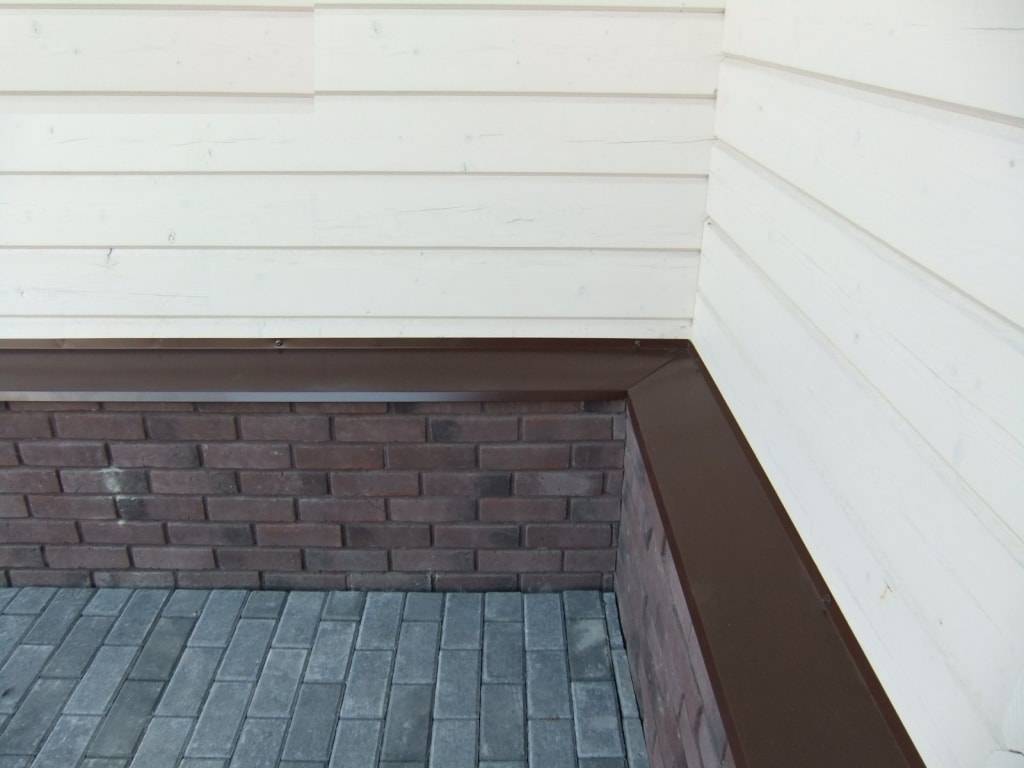 Как правило, цоколь здания немного выходит на пределы стен, поэтому при сильных ливнях вода иногда просачивается в пространство между отделочным материалом и стеной, вызывая разрушения как стены, так и отделочного материала. Чтобы этого не происходило, опытные строители обязательно устанавливают отлив, который изготавливается оцинкованной стали, с последующим нанесением полимерного покрытия.