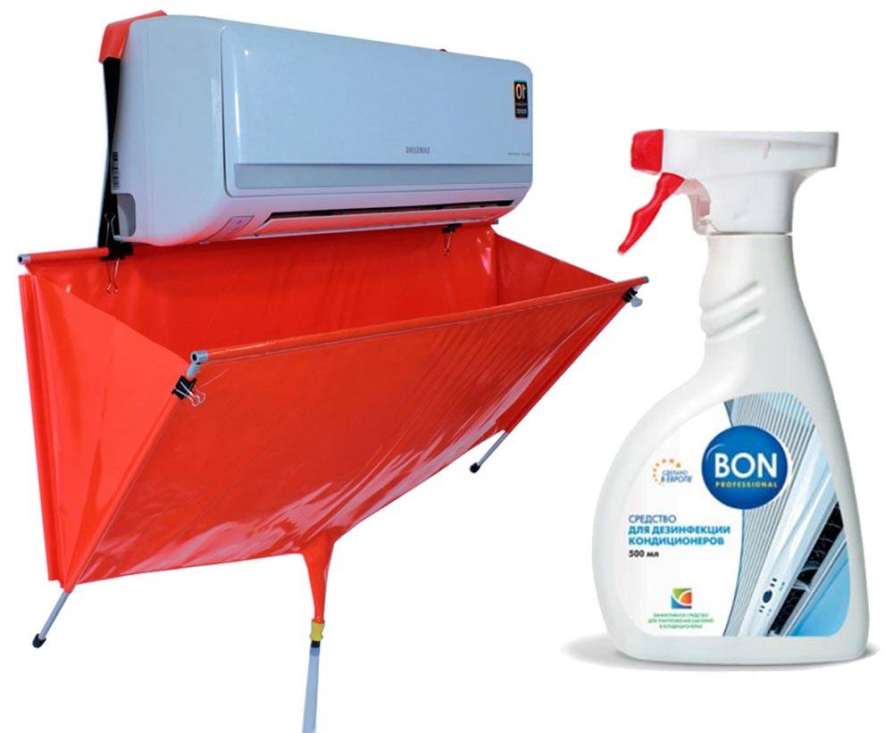 Сервисный пакет – это специальный пакет, из полиэтилена или других материалов, продается в магазинах климатической техники, стоит в среднем 1000-1500 рублей. Он предназначен специально для очистки кондиционеров, покрывая собой все пространство под кондиционером, чтобы при чистке все нечистоты могли попадать туда, и не стоило беспокоиться о загрязнении стен.