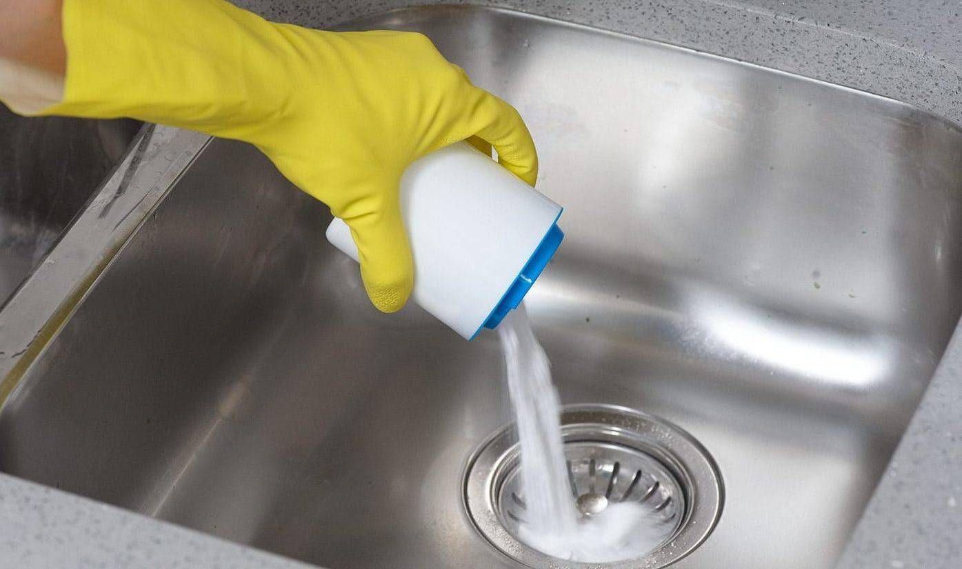 Работать с ними придется осторожно, так как вещество едкое. Чтобы прочистить трубу канализации, в раковину нужно всыпать 1 колпачок средства и залить его горячей водой