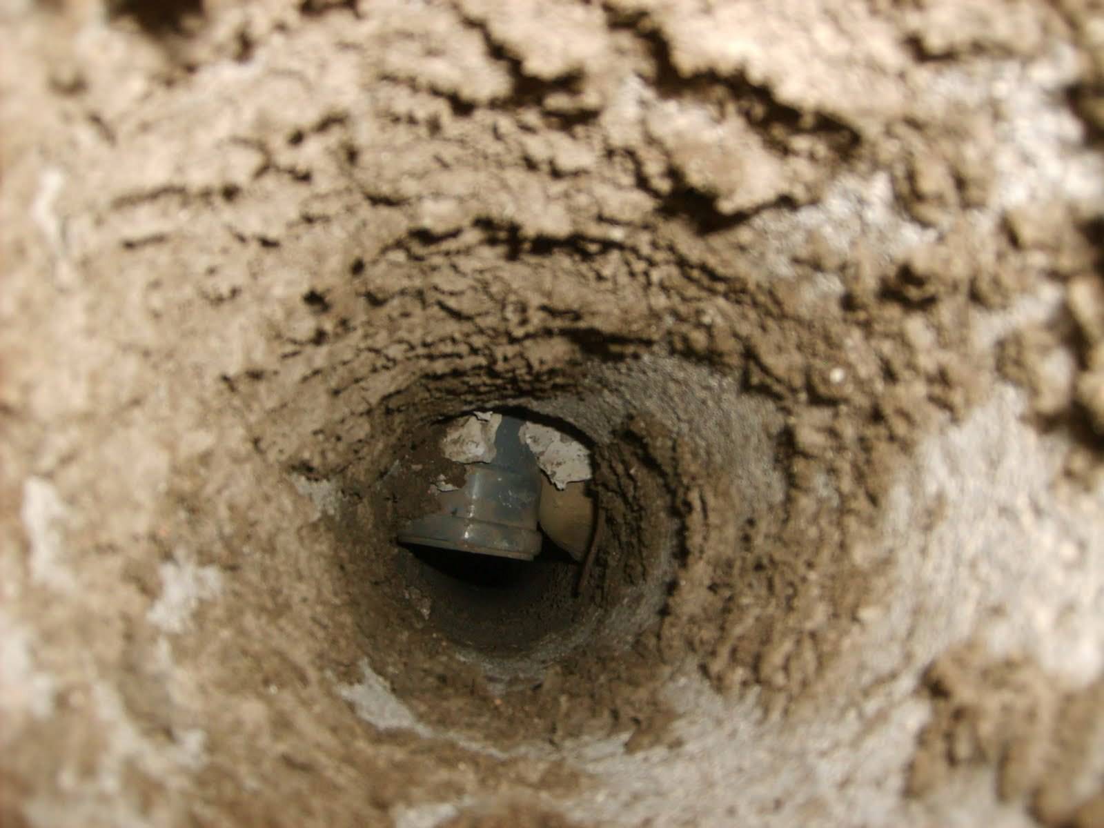 - Чтобы избежать травмирования рук о возможно находящийся внутри мусор (гвозди, останки птиц и грызунов, стекло), все содержимое на дне канала извлекается при помощи строительного шпателя. Нужно постараться, как можно глубже засунуть руку.
