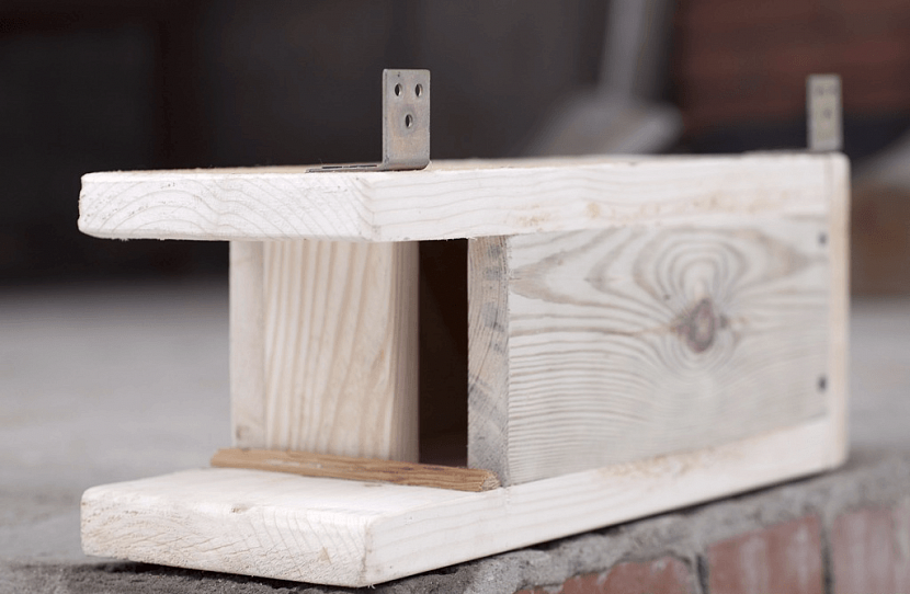 К задней стенке предварительно прикрепляется специальная планка, которая служит для последующего крепления скворечника в установленном месте.