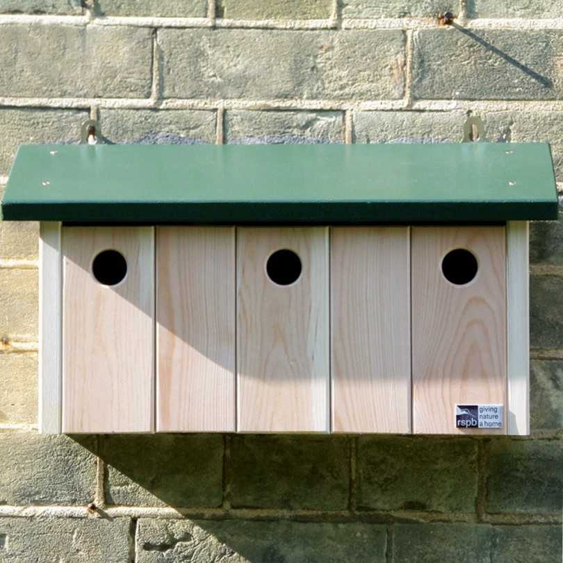 Домики для этих маленьких птичек, которые в природе селятся в трещинах зданий и деревьев, должны иметь два летка размером 3,5-4 см на треугольных боковых стенках, расположенные под самой крышей. Их называют гнездовьями. Их высота не более 25 см, ширина и глубина 15-20 см.