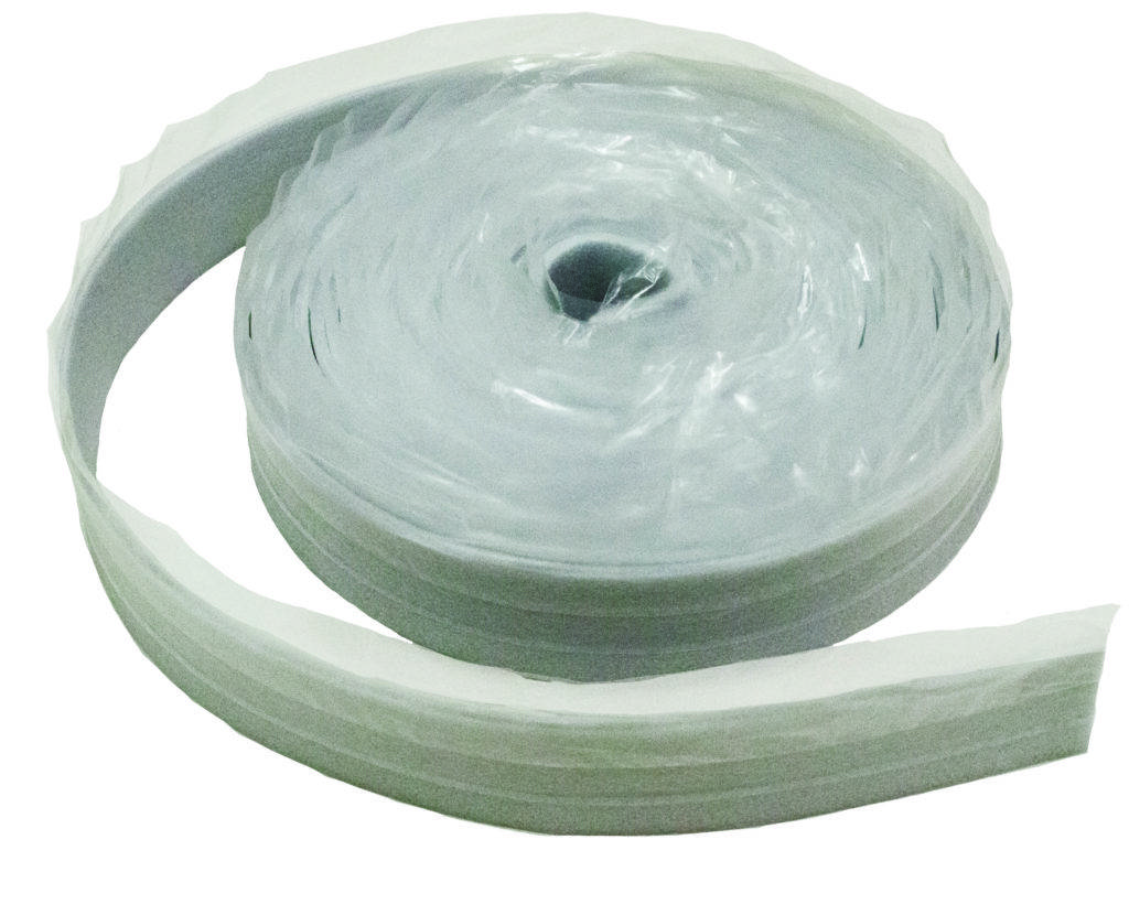 Сочетание обоих этих свойств объединены в специальной демпферной ленте. Продается она в бухтах, имеет ширину от 10 см. На одну сторону демпферной ленты нанесен клеящий слой, защищенный технологической пленкой. На самой ленте есть место сгиба.