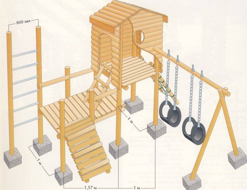 Следующий элемент – качели. В этом моменте никаких сомнений нет. О качелях мечтает каждый ребёнок.