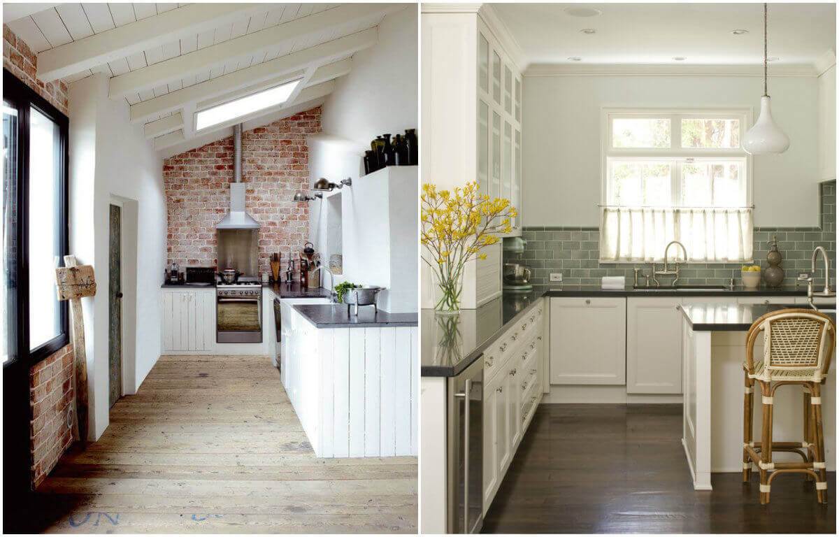 Белые кухни — настоящая классика. Конечно, они могут быть разными: от белоснежного до светло-серого или бежевого. Многие пользователи предпочитают белый, потому что он отражает свет, которого никогда не бывает достаточно при приготовлении пищи. Особенно это знают владельцы небольших кухонь. Если у вас окажется больше свободного места, которое также хорошо освещено, то можете позволить себе модную феерию — кухню черного цвета. Это смелый шаг, но хорошо продуманный, он может дать потрясающий эффект, особенно в сочетании с деревом с интригующей текстурой.