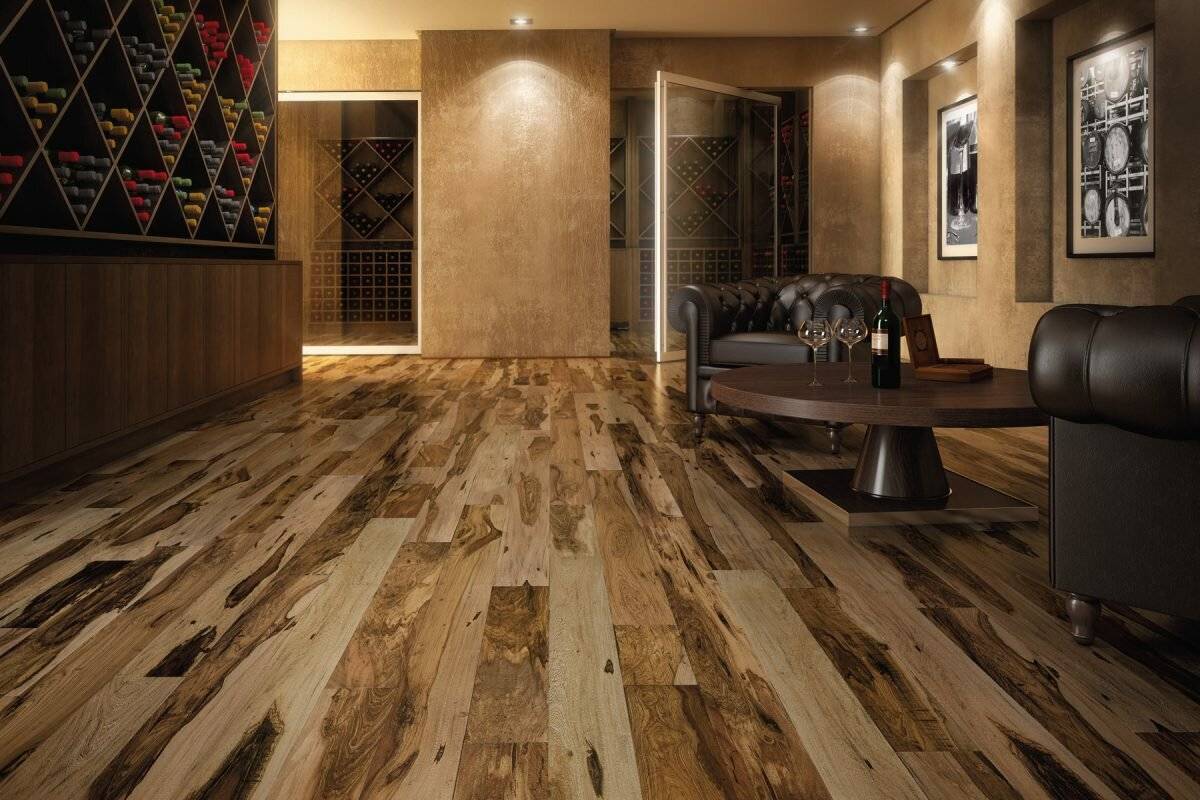 Для отделки пола, лучшим вариантом станет прочный керамогранит. За счет прямоугольной формы и рельефной фактуры, он внешне ничем не отличается от натуральной древесины и напоминает паркетную половую доску.