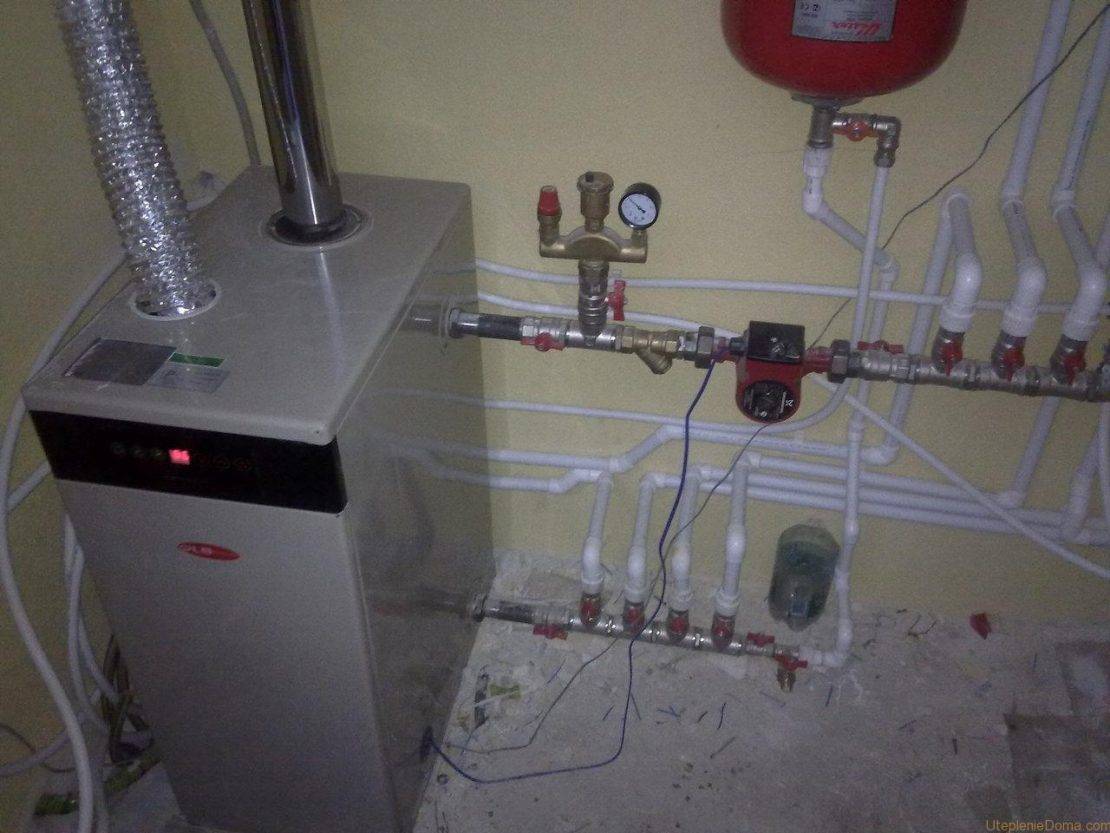 Схема подключения котла к системе отопления в этом случае не сложная. Нужно смонтировать всего лишь два шаровых крана, которыми можно отсечь котёл в случае необходимости. Ремонт агрегата или любые профилактические работы не будут доставлять сложностей.