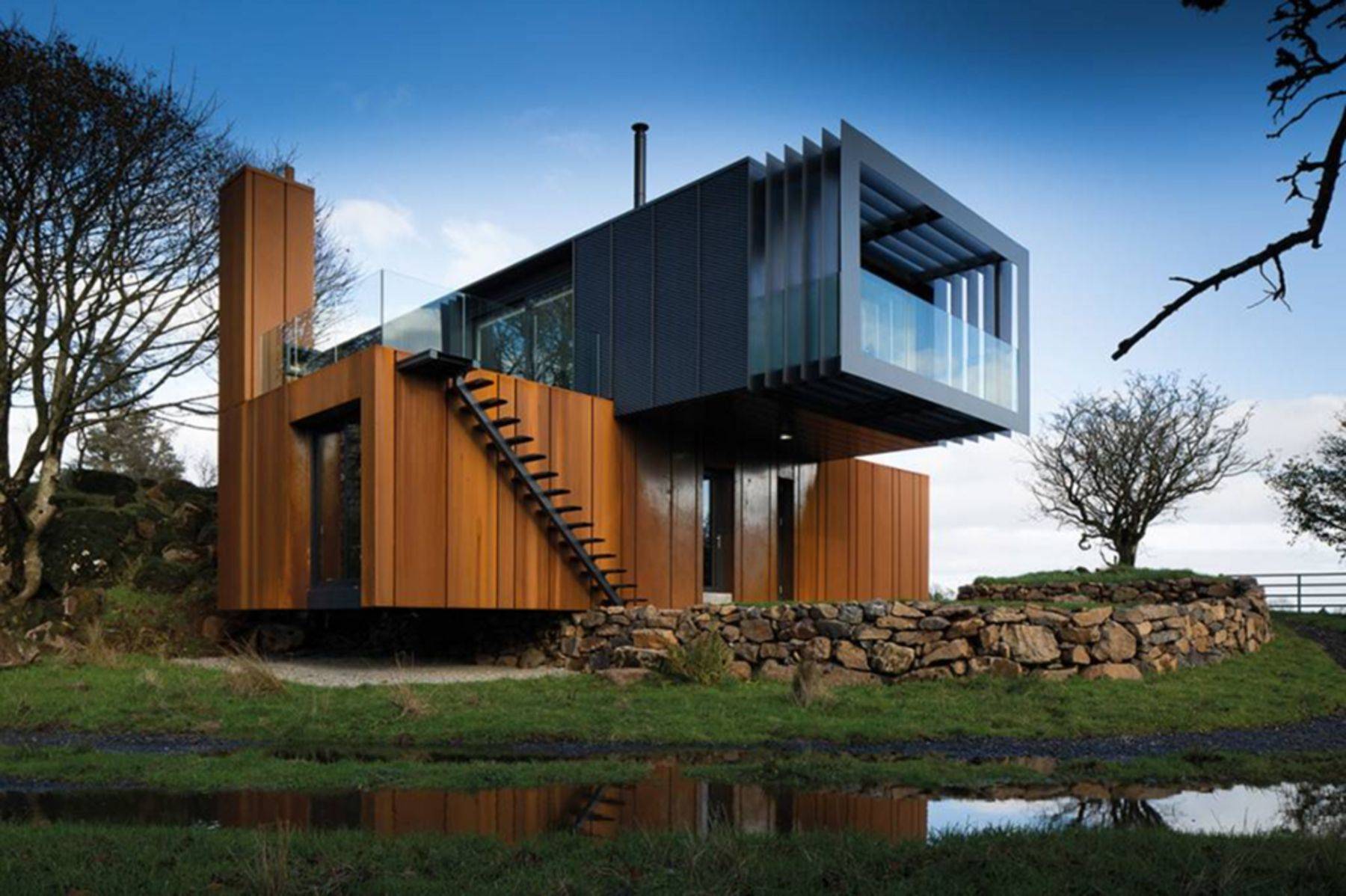 Сборка здания осуществляется по отработанной технологии и не занимает много времени. Если использовать модули с наружной и внутренней отделкой, после сборки коттеджа можно в него вселяться. Но нередко застройщики применяют контейнеры без декоративной отделки. Это позволяет выбирать облицовочные материалы на свой вкус.