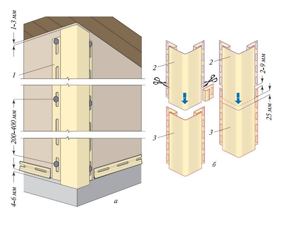 Комплектующие для монтажа винилового сайдинга и места их крепления на фасаде здания