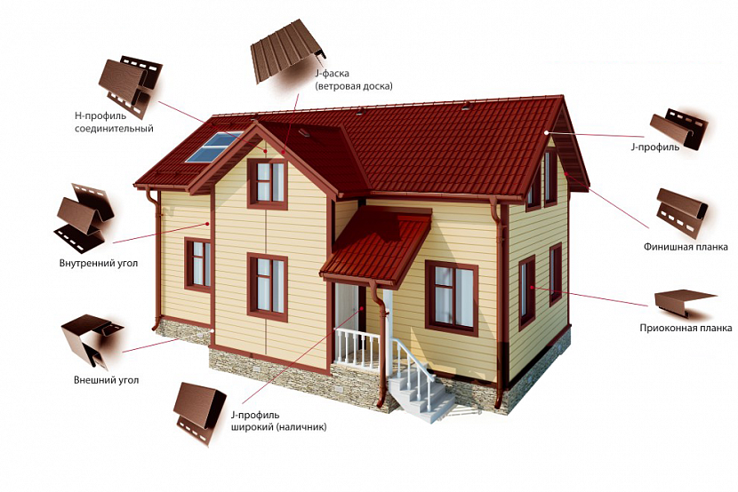Комплектующие для монтажа винилового сайдинга и места их крепления на фасаде здания