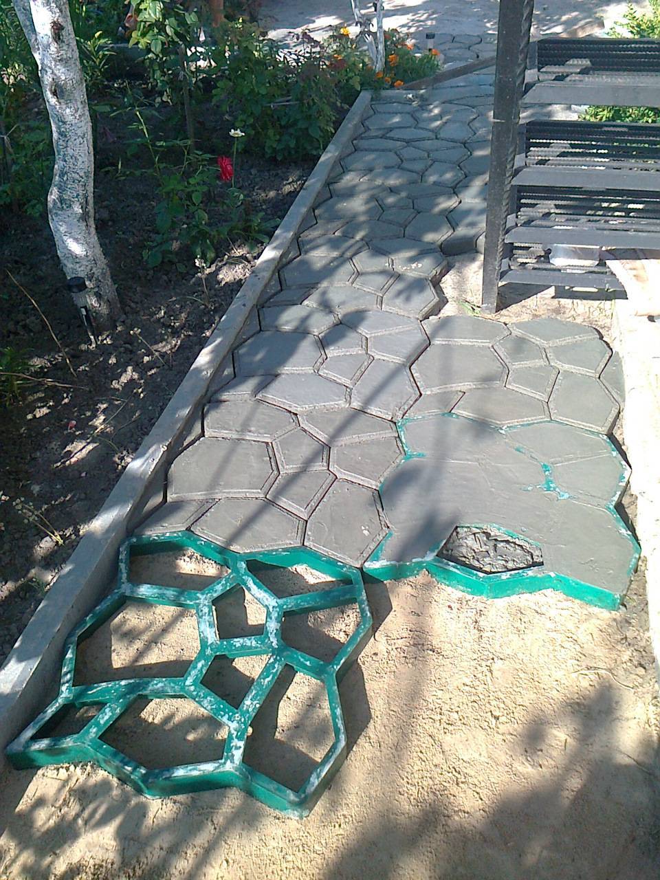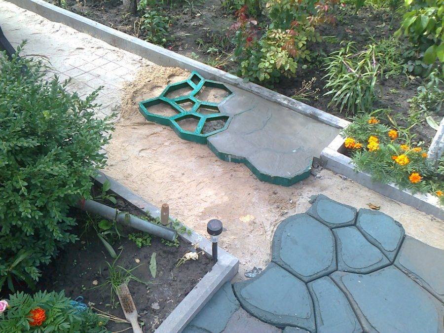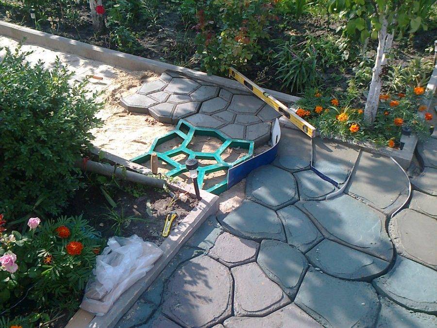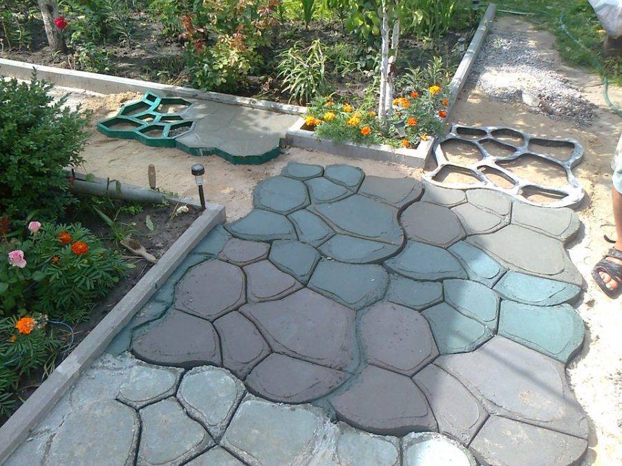 Если нет желания тратить время и силы на изготовление трафарета, то можно упростить задачу и купить готовые формы для садовой дорожки. Это во много раз ускорит процесс создания дорожки.